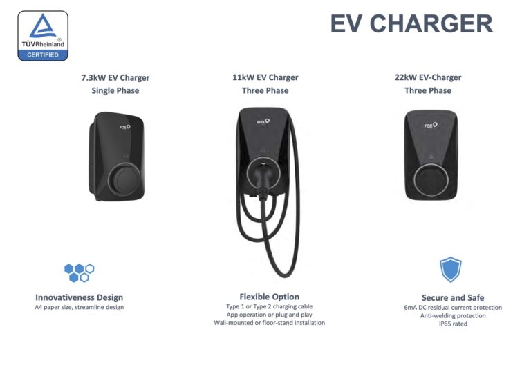 EV-Charger & Smart Monitoring Auch die Mobilität von morgen hat FOX ESS im Blick: Mit Wallboxen von 7,3 bis 22 kW und smartem Monitoring über App oder Cloud bist du perfekt ausgestattet. Ergänzt wird das Portfolio durch Datenlogger und Energiemanagement-Systeme, die für volle Transparenz sorgen.